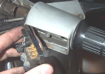 Remove the headset top by removing the 4 screws from the underside of the headset. Carefully loosen the speedometer connection to the speedo to free the headset top so it can be lifted away from the bottom, but don't disconnect any wires.