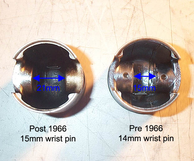 end. Post 1966 engines have a 15mm wrist pin and a caged roller bearing