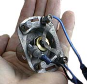 2. Take the bulb holder assembly and remove the old bulb holder part from the center with a grinder or some small tin snips. It should look like below or at least have enough metal removed to allow the connections of the new bulb to stick through the center.