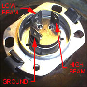 3. The new bulb is an H4 type halogen that costs about $8.00 at most auto shops and has an outside diameter that is a hair larger than the inside of the reflector hole. You'll need to slightly enlarge the existing hole with pliers until the bulb is a tight fit. Also keep the notch at the top as the new bulb has a locator pin at the top. Bear in mind that if the wiring harness has not been changed in your bike you'll have to select a voltage/wattage that is consistent with your bike.