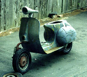 I checked clearances of the center stand (which had to have about an inch welded to it), made sure the engine fit under the side cowl, and that the forks would not rub. You can skip the GS150 (or GL150) fork change and just change the center hub of the original VBB forks, but you may need to change the front mudguard as a 10" wheel will rub on an original VBB fork/mudgurad combination. Next Section --> |