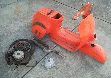 • Add the PK 125 automatic engine to the '74 Vespa frame, but make the bike look totally stock except for the pulley shroud which will stick out below the bodywork in the same area the fan shroud would on the original.