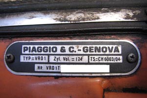 This model was made for the Swiss market only and was even given it's own chassis number. The 175cc must have been a reponse to some law, but the rest of the bike appears to be the same as the Italian Rally 180. The motor is stamped VRD1M. Thanks to Enrico Marra from Belgium for the images.