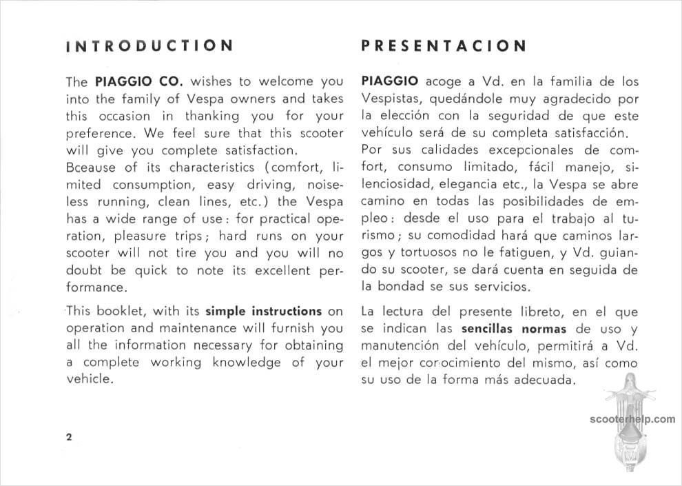 Italian Vespa Owner's ManualsVespa 50 (V5A1T) Vespa 50 Special (V5B1T) |