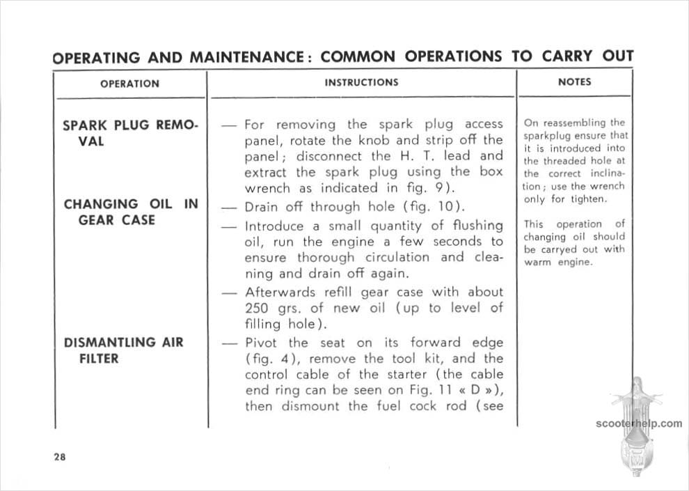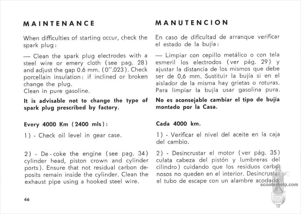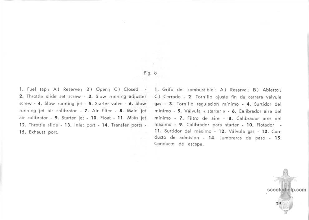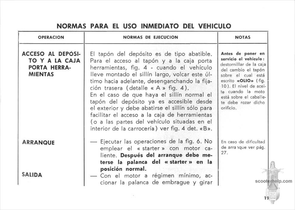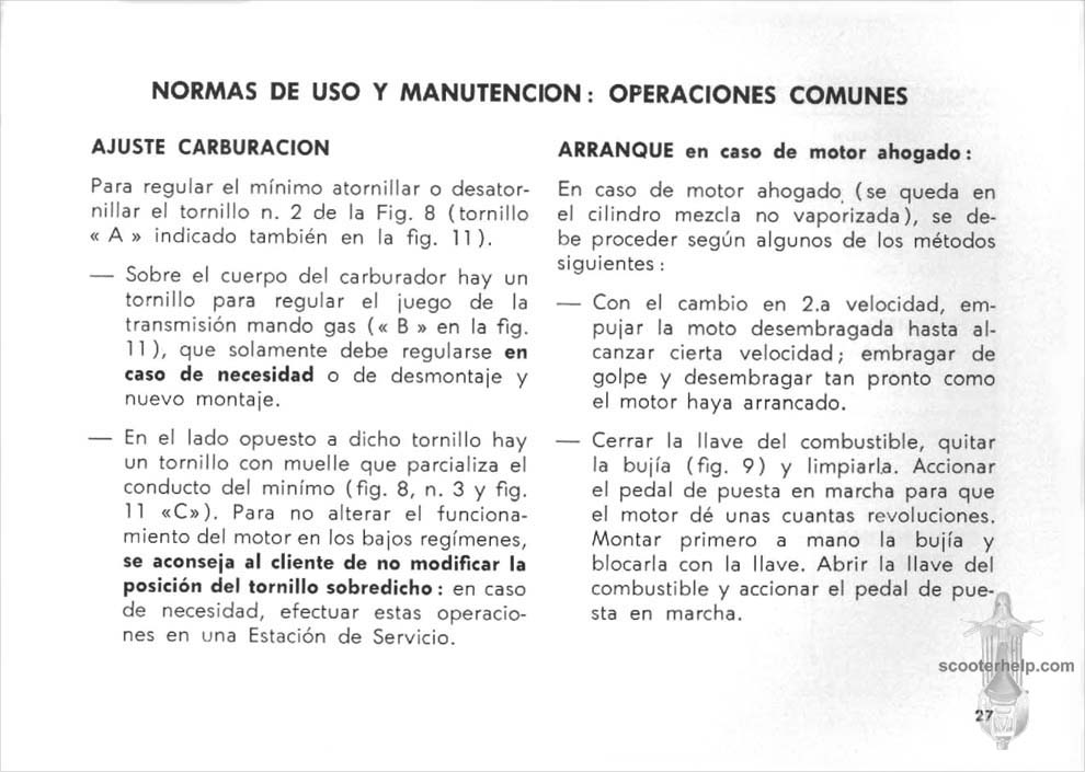 Vespa 50 (V5A1T) & 50 Special (V5B1T) and electric start version Owner's ManualClick individual pages below for a 6.75"x4.75" 150 DPI page. Taken from the original owner's manual supplied with the Vespa 50. Files sizes are about 250K for a color page and 180K for a black and white. Thanks to ?? Click individual pages for images or here for a 6.2MB PDF file. |
