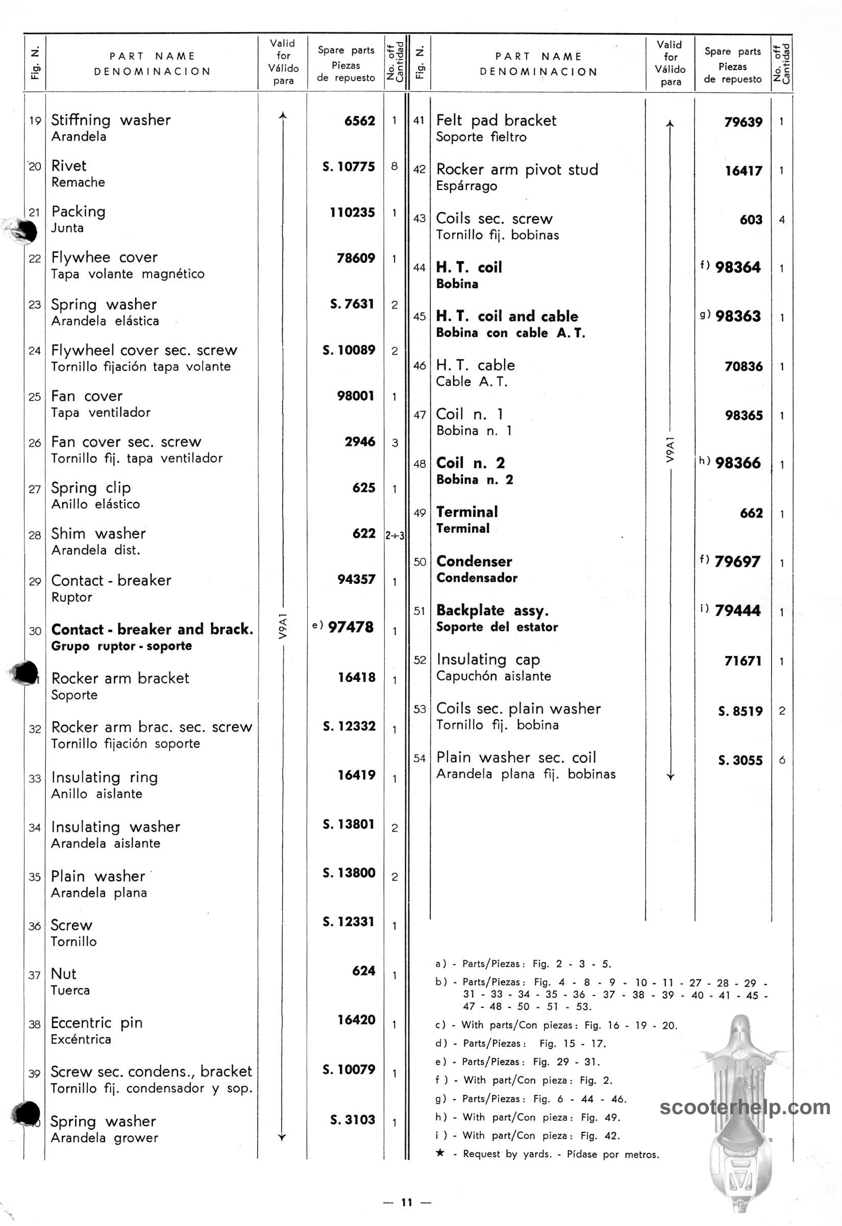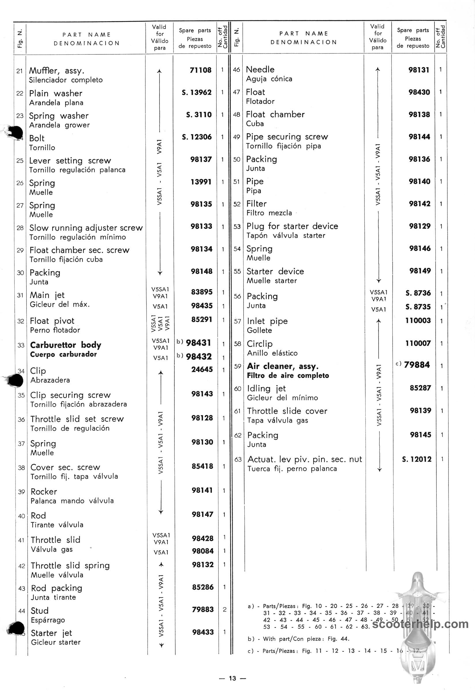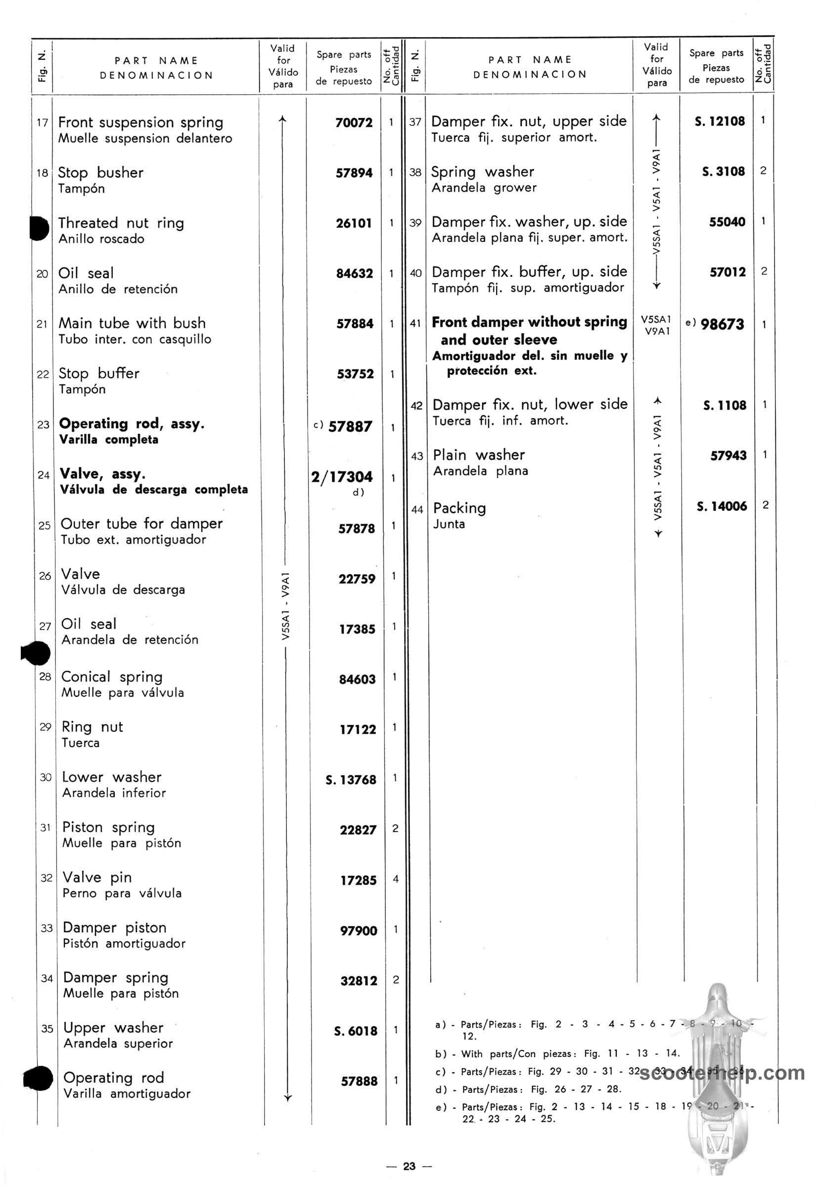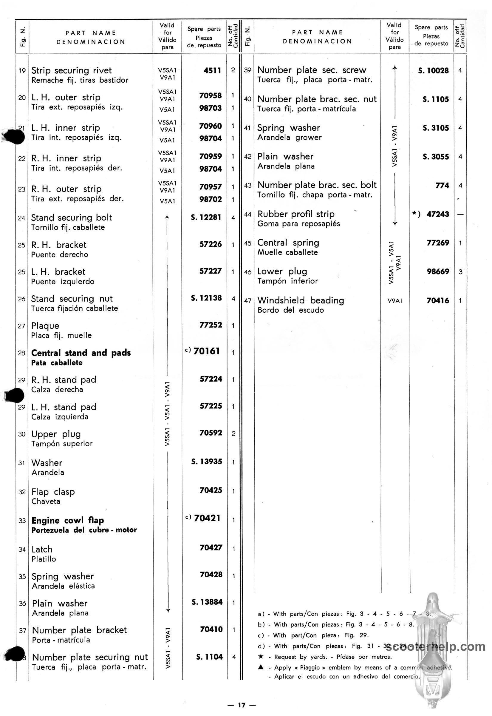 Vespa 50 (V5A1T), Vespa 50S (V5SA1T), Vespa 90 (V9A1T) Parts BookClick individual pages below for a 8.25x12" 200 DPI page. These are taken from the original parts book from Piaggio. Or click here to download a 6.4MB PDF file |