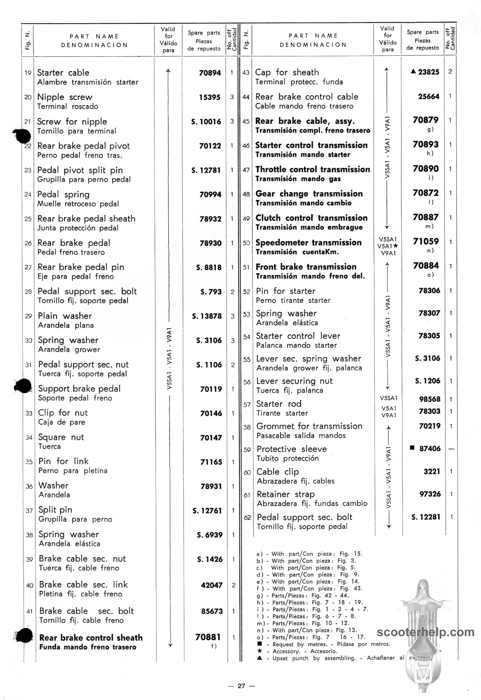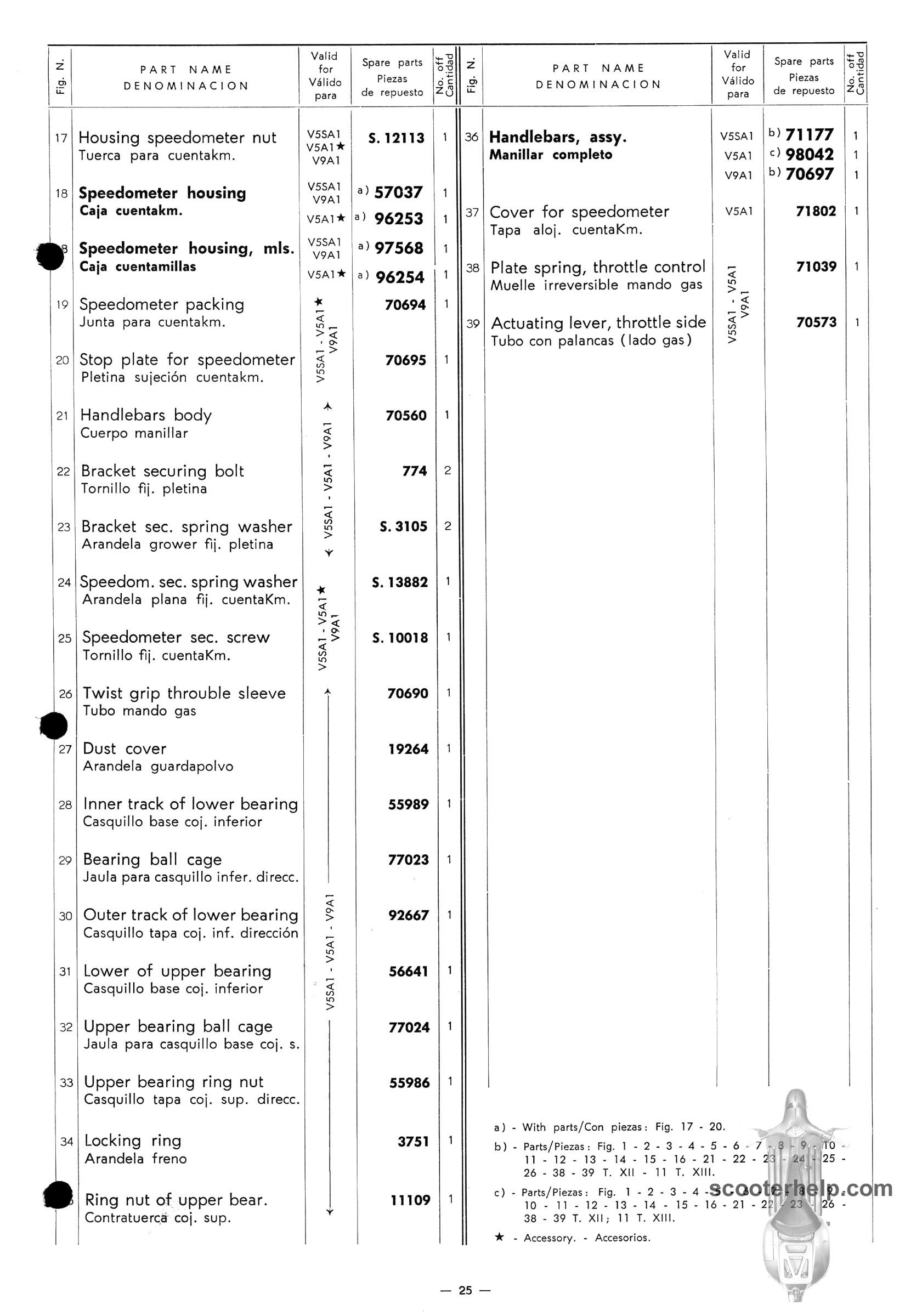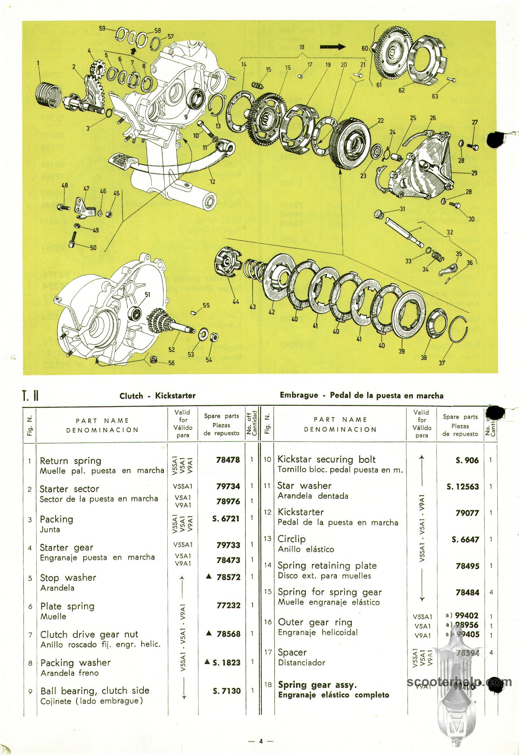 Vespa 50 (V5A1T), Vespa 50S (V5SA1T), Vespa 90 (V9A1T) Parts BookClick individual pages below for a 8.25x12" 200 DPI page. These are taken from the original parts book from Piaggio. Or click here to download a 6.4MB PDF file |