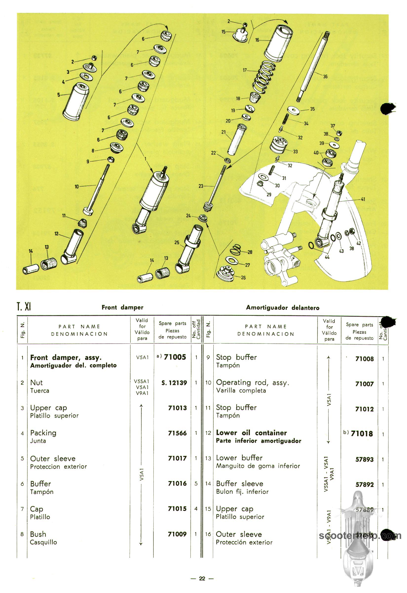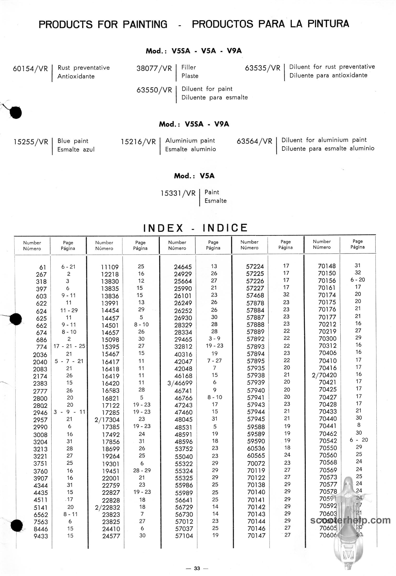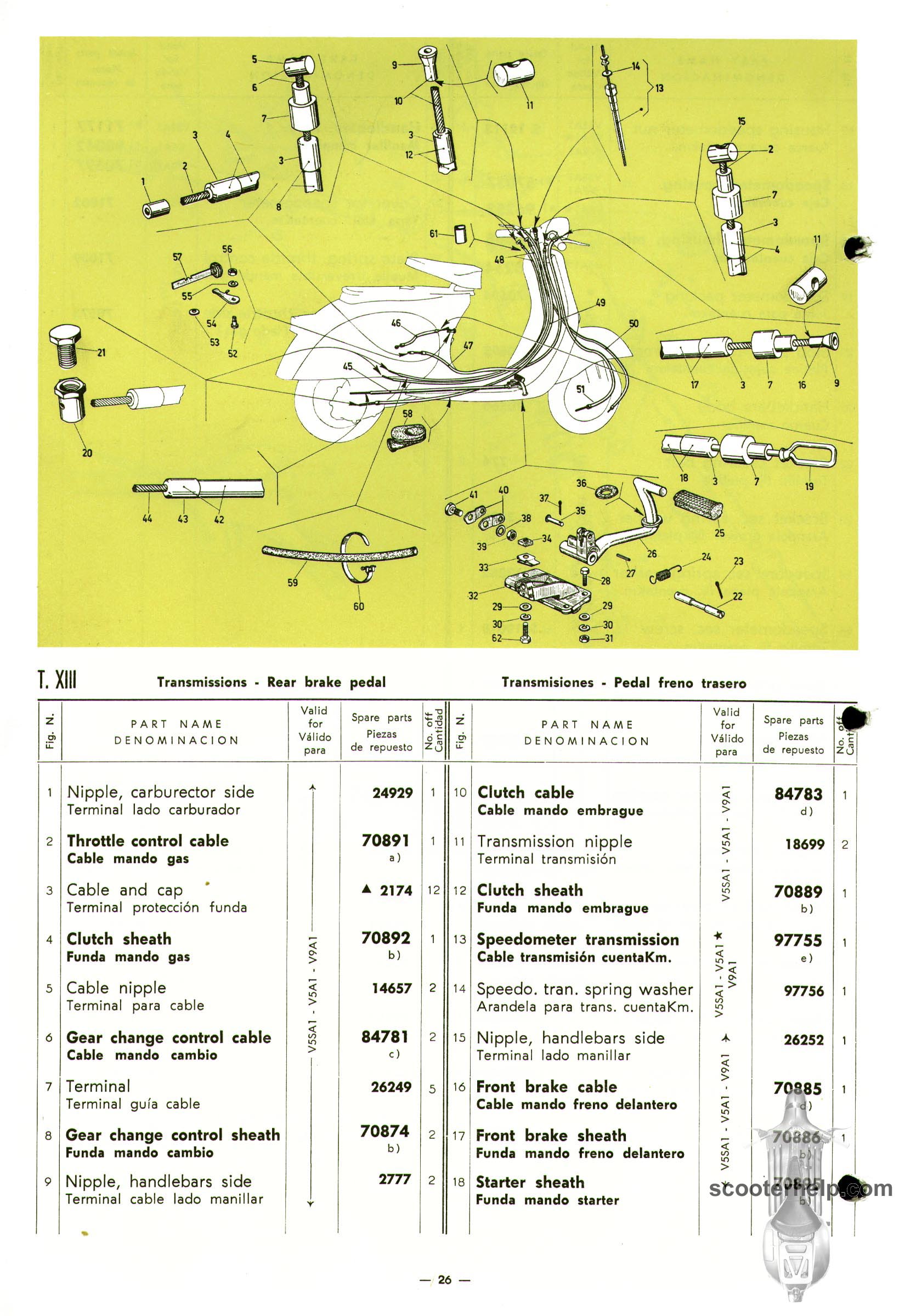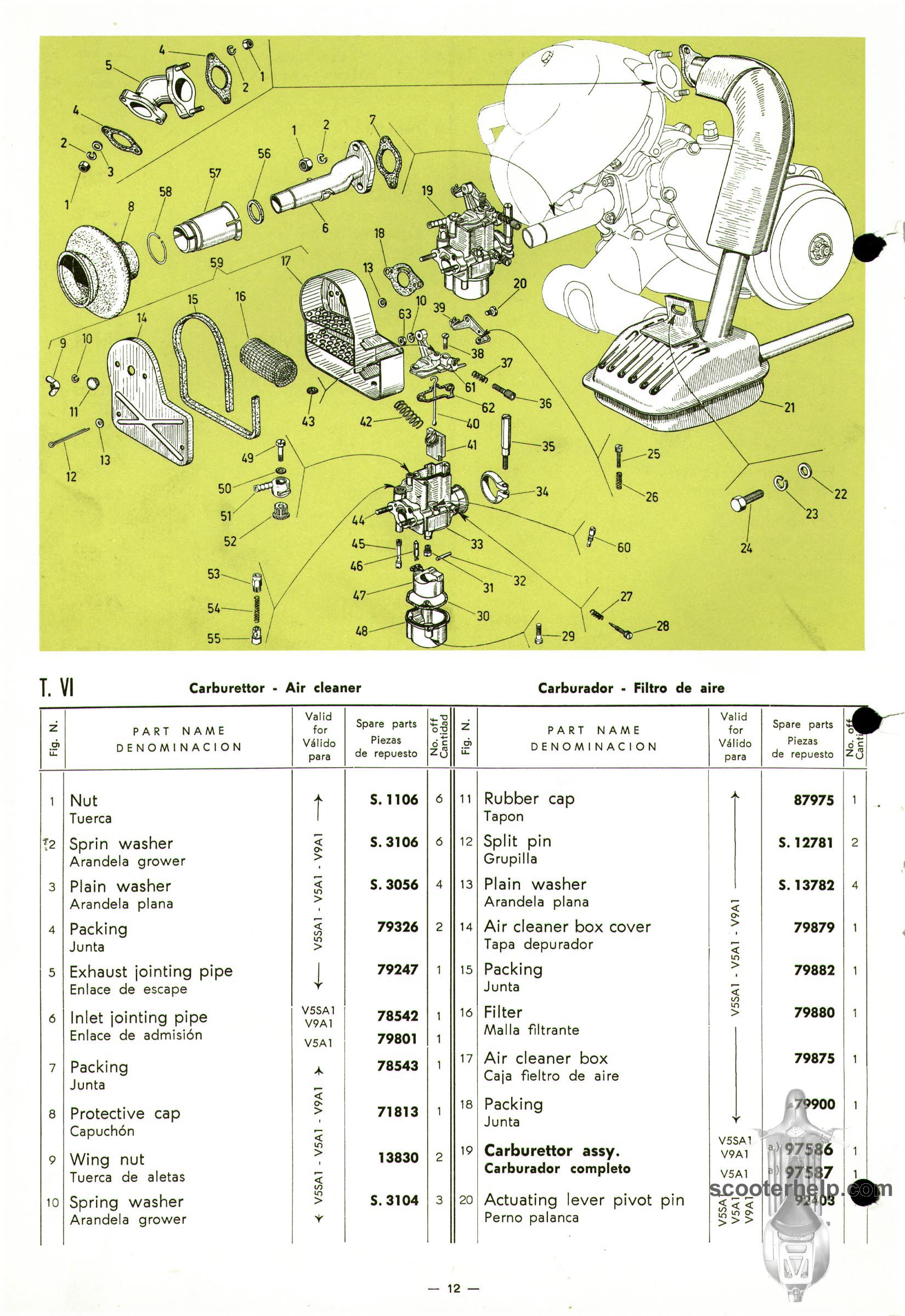 Vespa 50 (V5A1T), Vespa 50S (V5SA1T), Vespa 90 (V9A1T) Parts BookClick individual pages below for a 8.25x12" 200 DPI page. These are taken from the original parts book from Piaggio. Or click here to download a 6.4MB PDF file |