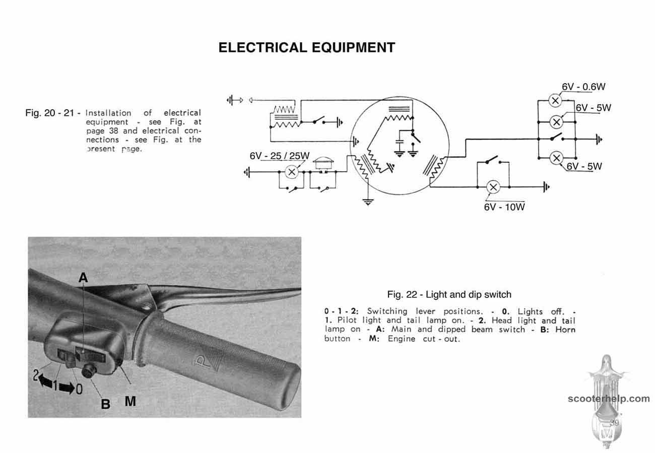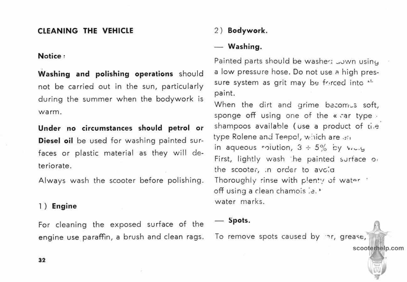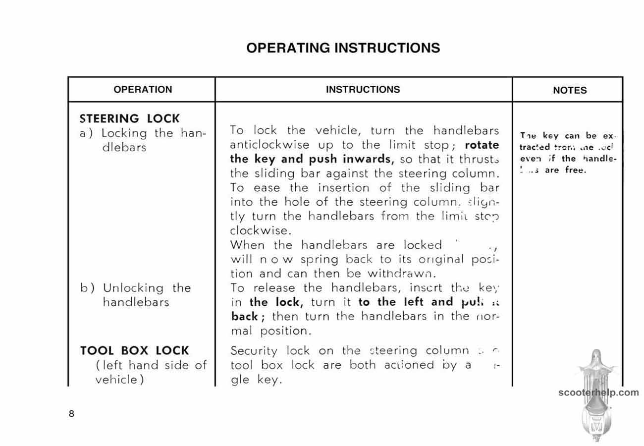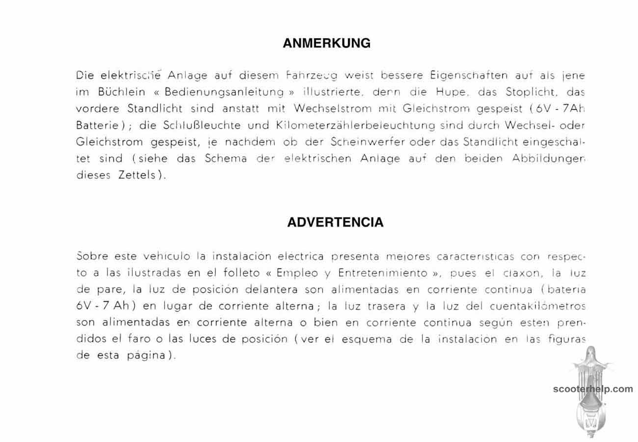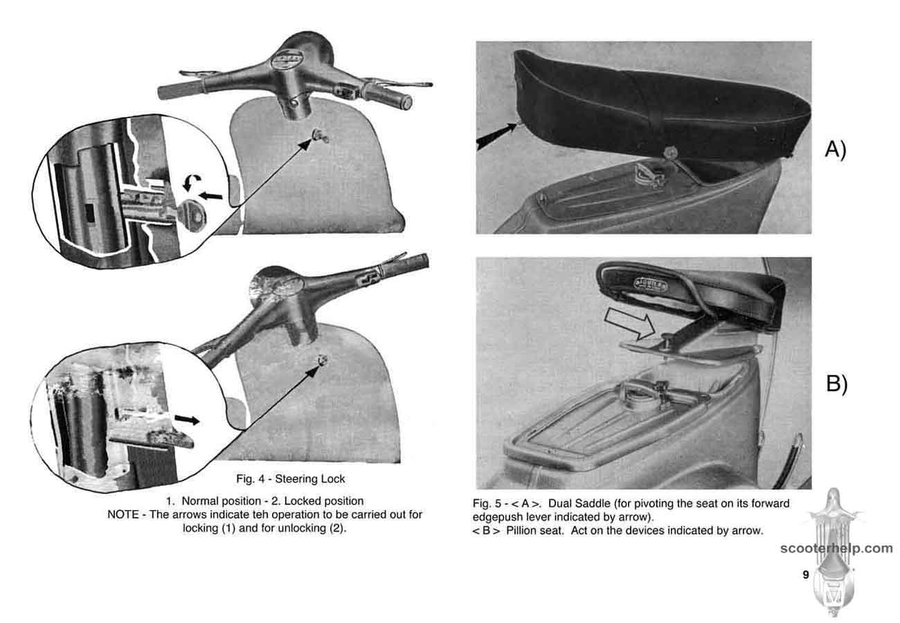 Click individual pages below for a 6.75"x4.75" 200 DPI page. Taken from the original owner's manual supplied with the Vespa 90. Files sizes are about 250K for a color page and 180K for a black and white. Thanks to Eric Dupraz for the scans.