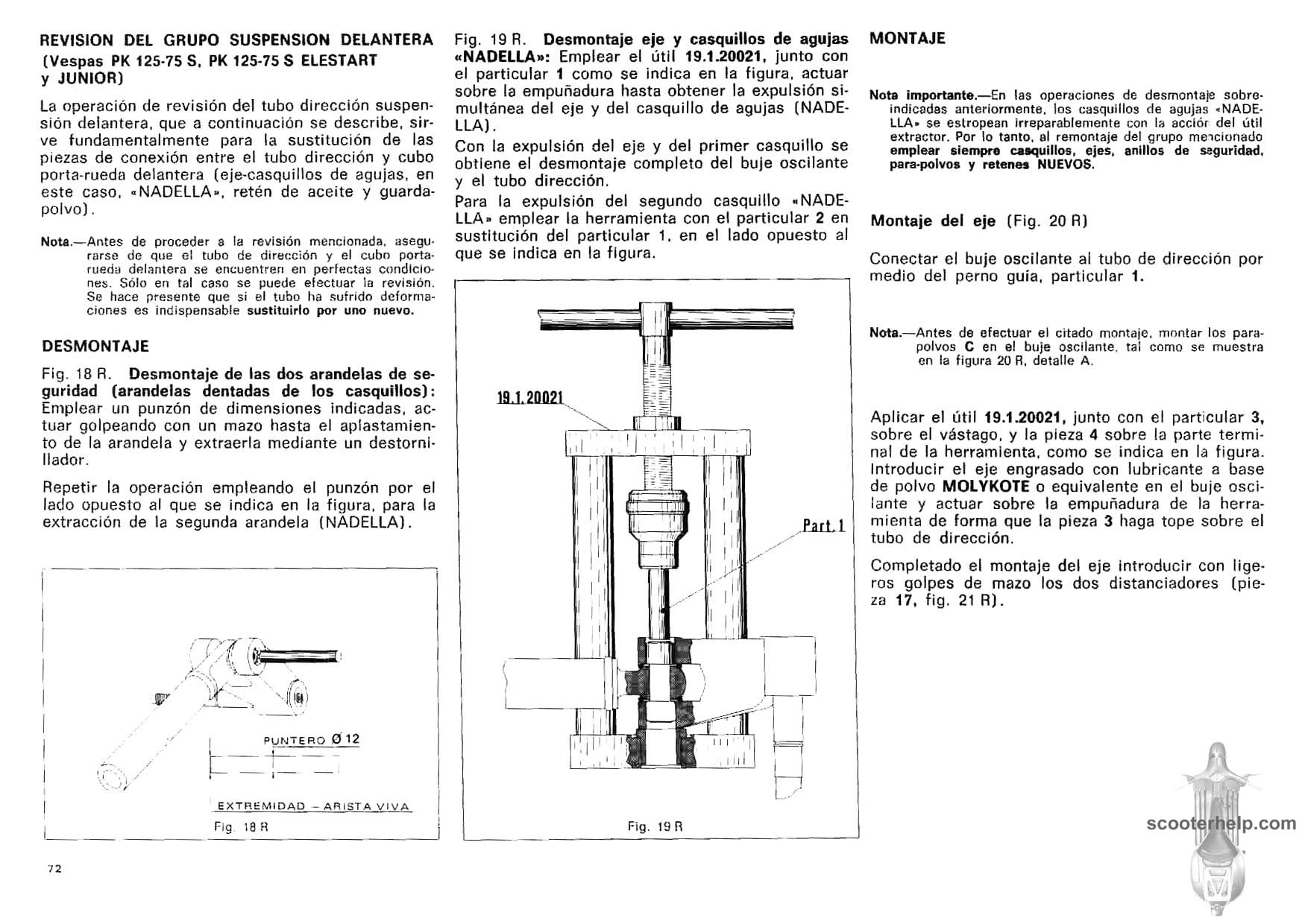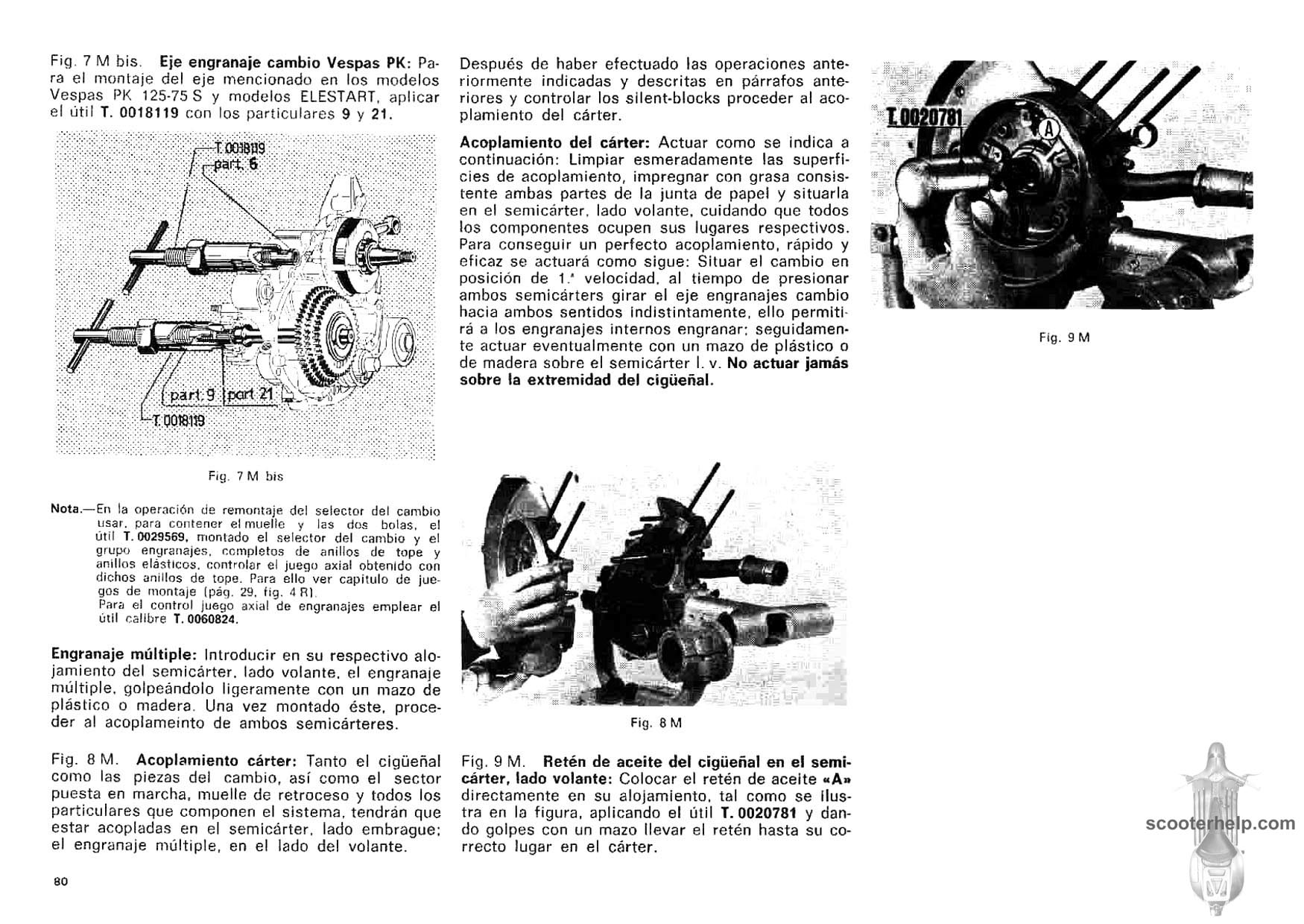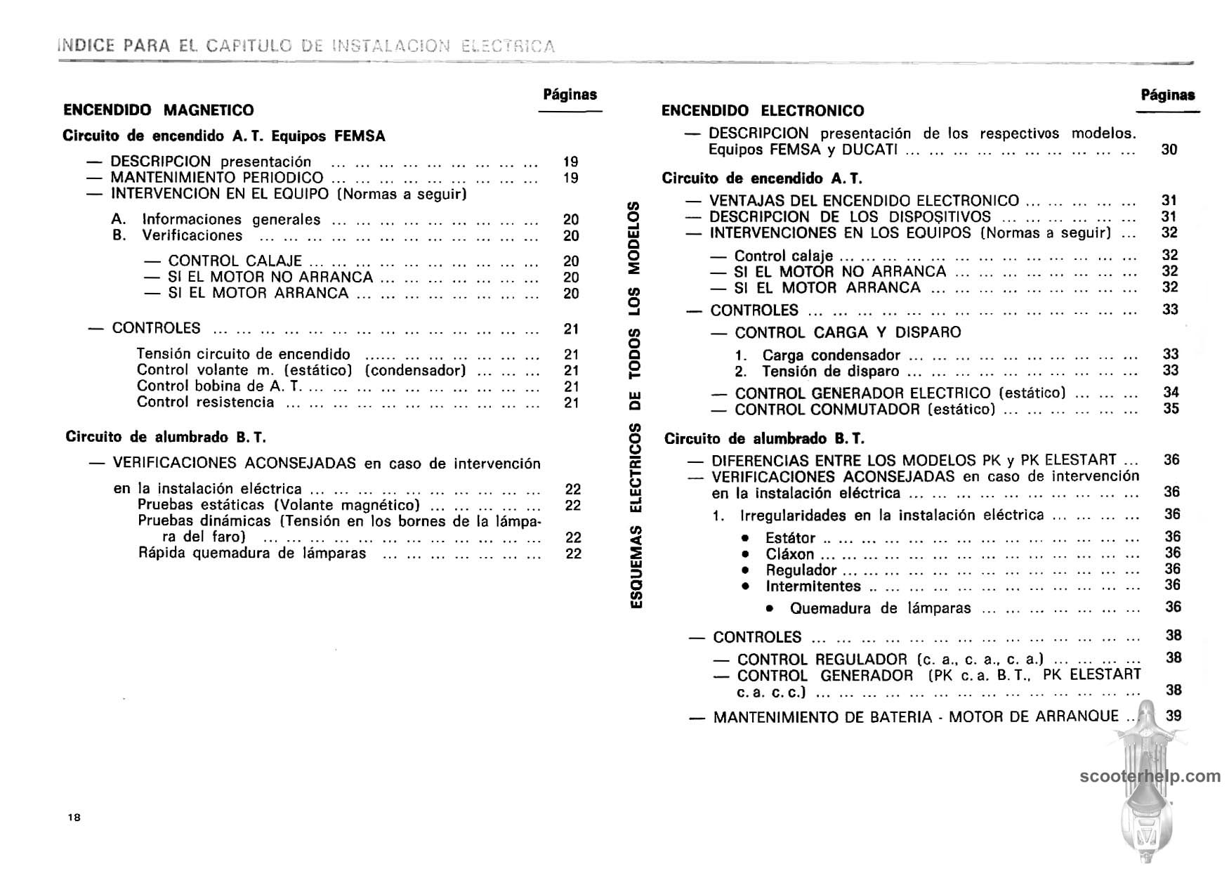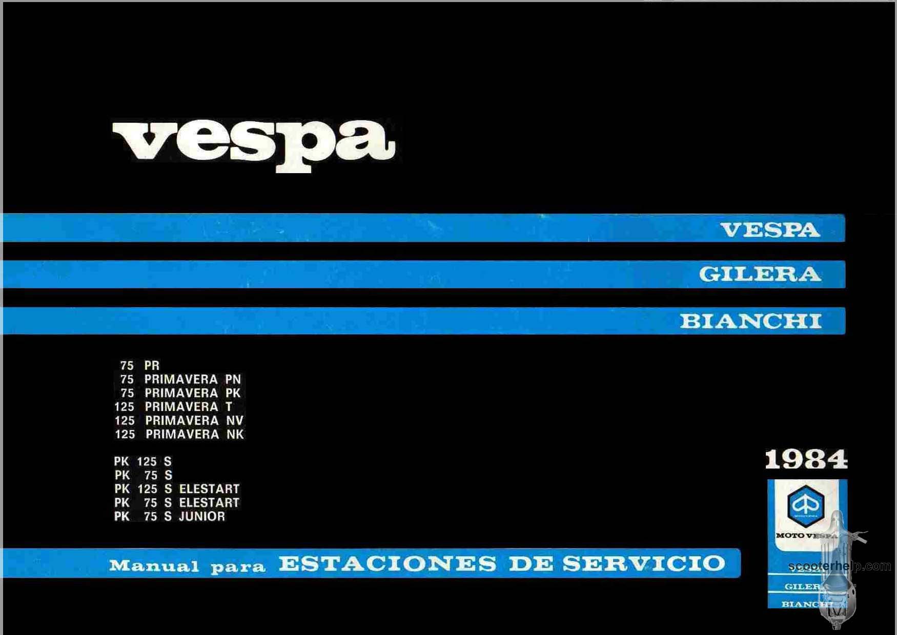 MotoVespa Primavera and PK Series Service ManualThese scans are taken from the original service book which was distributed to dealers in the 80s. It shows some maintenance information, a quick guide to disassembly, and various pages of tolerances and electrical diagrams. It also give loads of electrical information and testing options for the ignition system, and shows many cool factory tools that were available to repair shops. Click each thumbnail for a 200 dpi image. If you prefer a PDF file of all the pages click here for a 17MB file download. |