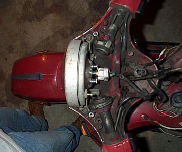 the front brake lever. It can be unhooked from the cable end. Be sure