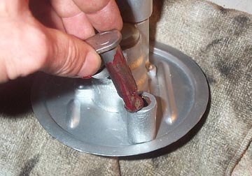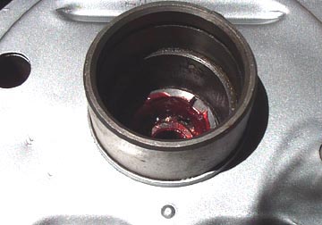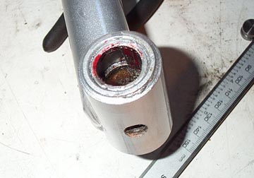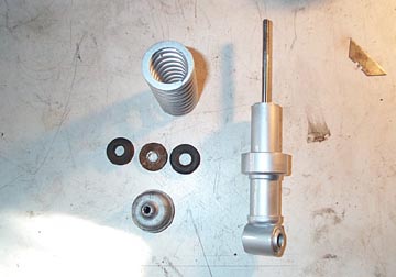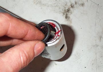 fit the single O-ring and hold it in place with a dab of grease. Carefully slide the shock and