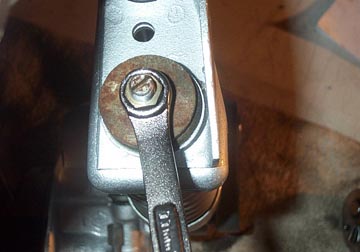in plastic cover plate over the end of the axle. Grease up the brake arm and