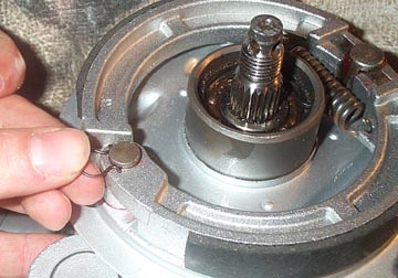 fit the circlip over the end pivot to hold the shoes in place. Now we can move on to the