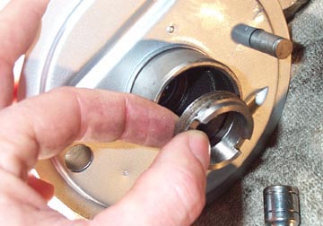 front rotating hub on the axle end to allow you to get the nut tight. Grease and fit the speedo
