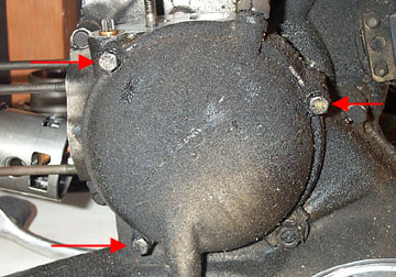 is much larger than 10mm. Once the three bolts (arrowed above) are
