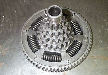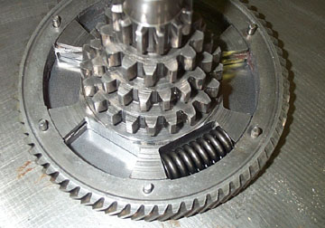 Put the center back in the primary gear and rotate it so the tabs engage. Note that the primary tabs will only connect flush with the primary in one direction. Once the center is in start fitting the springs one at a time. You may need a screwdriver to fit help fit them.