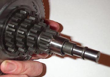 To rebuild the rest of the drive ready for installation in to the motor, first place the shaft all the through the center of the gears.