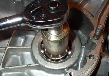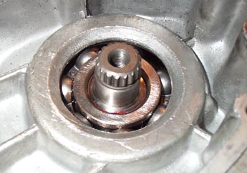 The crank shoulder never seems to come all the way flush with the side of the bearing but a quick look inside the engine shows that the crank web is almost touching the oil seal flange. I'll update this page if I have any problems with this installation. Next Section --> |