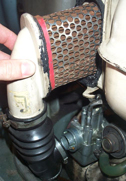 Start by putting the bike on the stand. If the bike is in running condition, turn off the gasoline, start the engine and run it until the carb runs dry. You can also drain the oil but it is not a required step (but you'll have to do it later if you are planning a rebuild). ![]() Remove both side panels from the bike and have a look at what is connected from the frame to the engine. On the left side of the bike, the fuel line, throttle cable, choke cable, and air filter intake rubber all need to be disconnected from the motor. ![]() To remove the air filter neck, loosen the retaining collar at the carb mouth with a flathead screwdriver, remove the two clips that hold the air filter in place, and pull the filter and neck assembly off the bike. It is not required to remove the whole air filter, but I find it easier to get it off the bike instead of messing with the rubber neck in the way of the carb. You can also remove the carb from the engine and leave all the cables attached, but I wanted the carb off the bike as well so I left it attached to the intake manifold.