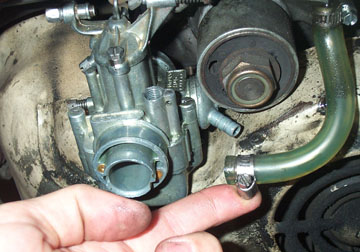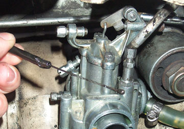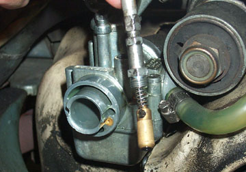 Use an adjustable wrench to loosen the clutch plunger. Pull the plunger out of the carb body and tuck it away in the frame so it is out of the way.