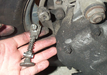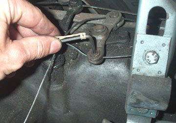 With the adjuster free, straighten the cable so it can be pushed back through the lower shock support casting...