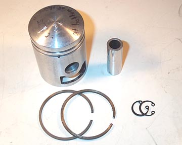 with the piston, two new rings, a wrist (or gudgeon) pin, and two
