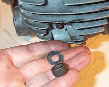 the piston. This gasket will only fit one way due to the cylinder studs.
