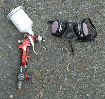 The most important piece of equipment is a professional respirator. These paints are highly toxic, highly flammable, and highly dangerous to your lungs. Buy a mask and cartridges that are specifically designed for painting. A dust mask won't cut it.