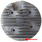 Lambretta Li125 Special head - a more central combustion chamber than an standard Li125. Shared w/GP125 motor. Part number A-10504 is stamped on the bottom face (arrowed). | ||||||||||||||||||||