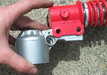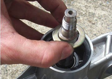 Follow this with a single thick metal washer and loosely fit the lock washer and single nut. If the shock shaft tries to rotate when you turn the nut, just move on to the next step.
