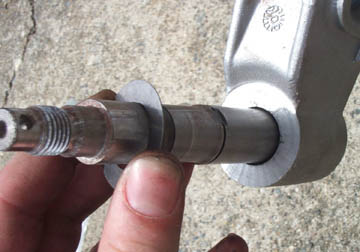 The first step is to fit the washer on the bare 200mm axle. Either way is fine.