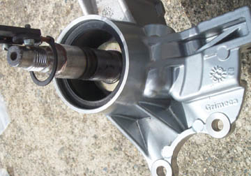 We found that the Biturbo shock needs a little grinding to clear the speedo drive as shown above. All the other parts fit together with no problem.