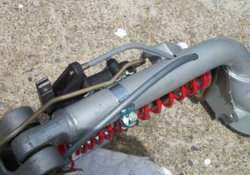 The first thing to do is make sure all the parts fit. With so many manufacturers making scooter bits it helps enormously to dry fit everything before getting half way through the project and run into a problem. We decided to change the forks out and also replace the existing shock with an aftermarket shock from Biturbo.