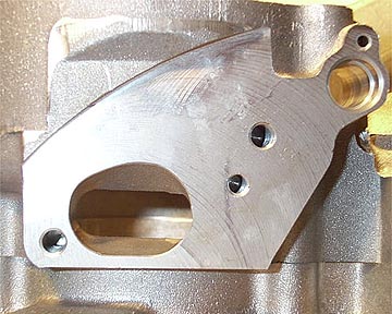 Above is a close up view of the clutch side main transfer before polishing, with the arrows for old and new. You can see the cast finish on the original transfer compared to the finish of the newly machined opened port.